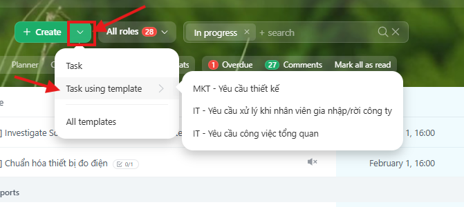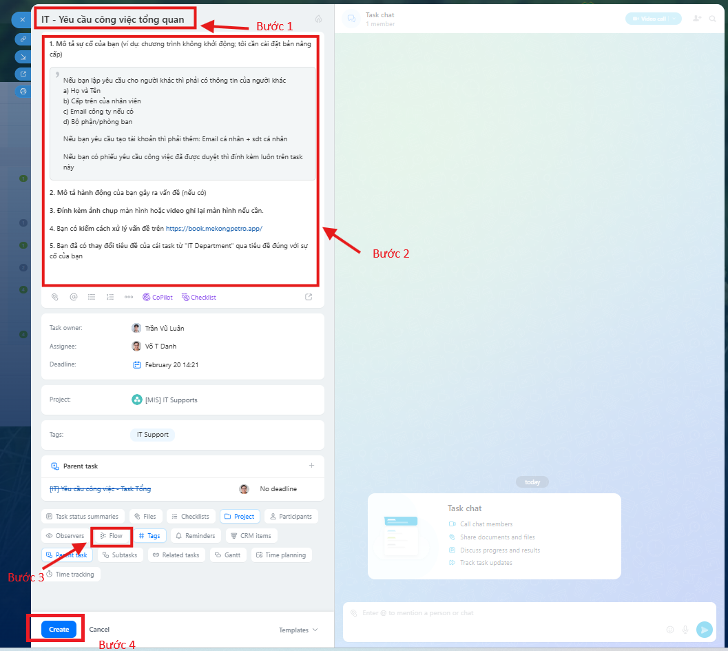 Bước 2: Tích chọn Create "để tạo 1 cái task công việc ".