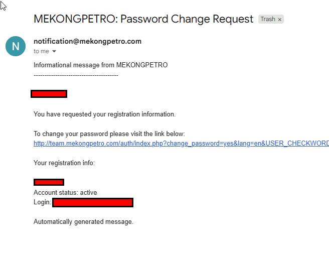 4 - Vào Gmail, sẽ thấy một email có link thay đổi password được gửi về. và bấm vào link bên dưới để tiến hành đổi password.