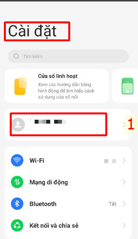 Trên giao diện vào Cài đặt à Click chọn vào tài khoản
