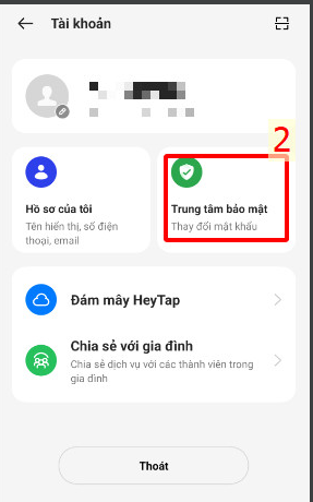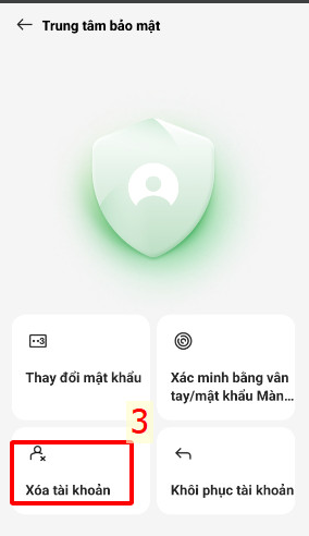 - Click Trung tâm bảo mật à Xóa tài khoản