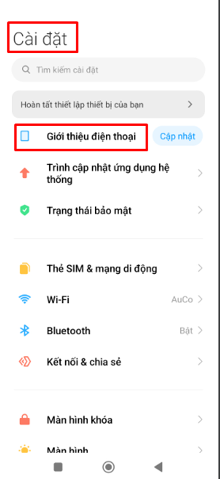 Bước 1: Tại giao diện màn hình, hãy đi vào Cài đặt à Chọn vào Giới thiệu điện thoại.