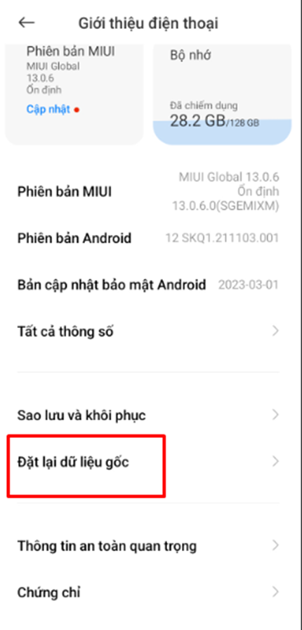 I. Cách 1: Hướng dẫn reset điện thoại Xiaomi bằng cài đặt