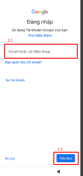 • Sau khi điện thoại kiểm tra xong Đăng nhập vào tài khoản  google