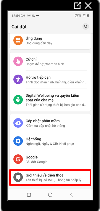 Bước 1: Vào cài đặt → Giới thiệu điện thoại